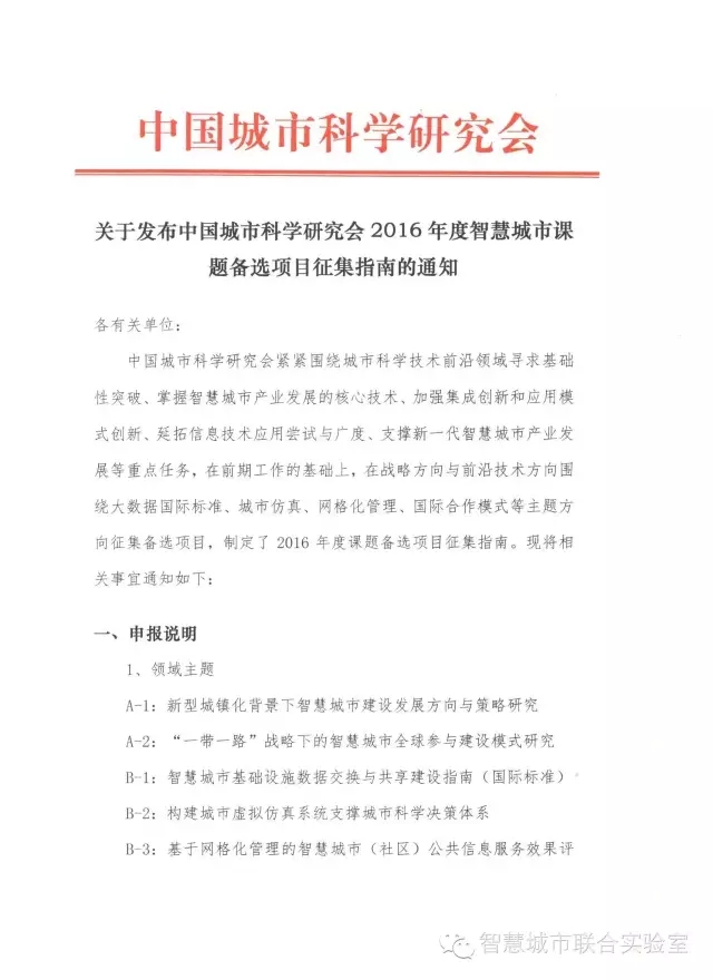 中国城市科学研究会2016年度智慧城市课题备选项目征集指南-中英文版 |