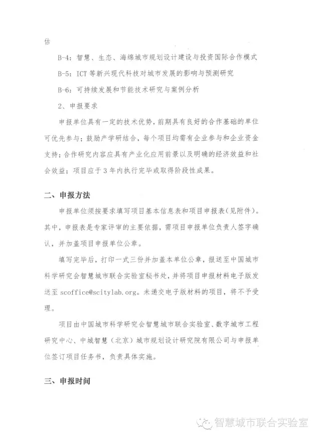 填写完毕后,打印一式三份并加盖本单位公章,报送至中国城市科学研究会智慧城市联合实验室秘书处,并将项目申报材料电子版发送至scoffice@scitylab.org。未递交电子版材料的项目,将不予受理。